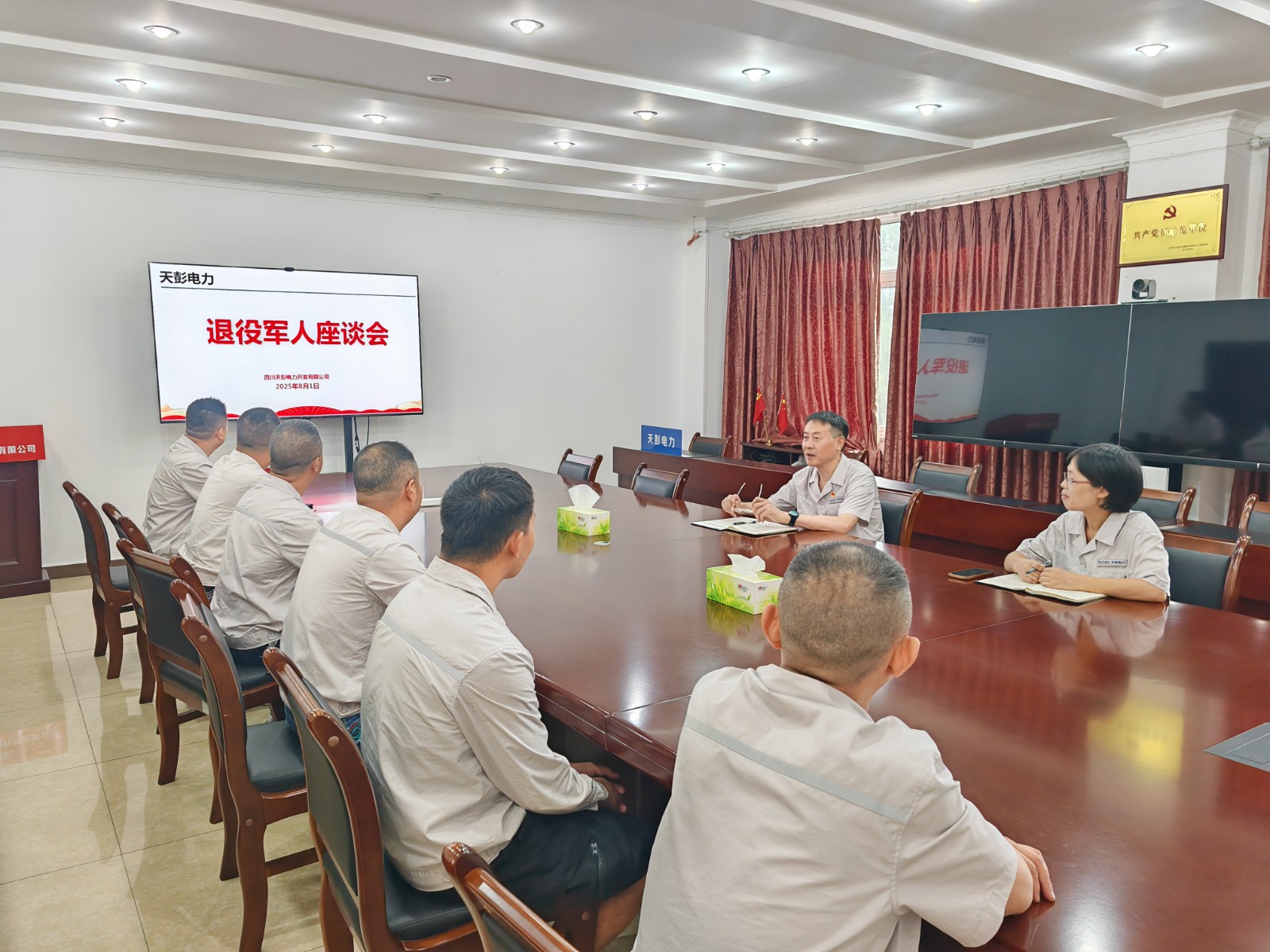 各所屬單位結(jié)合實際情況開展了“八一”建軍節(jié)走訪慰問活動。天彭電力公司、百花灘電廠召開退役軍人座談會,高奉山電廠開展“八一”建軍節(jié)主題黨日活動,槽漁灘公司組織觀看愛國主義教育電影《南京照相館》,為退役軍人送上節(jié)日祝福和慰問。所屬單位認真學(xué)習(xí)貫徹習(xí)近平總書記對雙擁工作的重要指示精神,重點了解退役軍人當(dāng)前工作與生活面臨的困難。退役軍人職工代表結(jié)合自身經(jīng)歷,分享了在部隊期間的成長經(jīng)歷和難忘回憶,并表示永葆軍人本色,做到“退役不褪色,轉(zhuǎn)崗不轉(zhuǎn)志”,不斷提升業(yè)務(wù)能力和水平,發(fā)揮模范帶頭作用,以更高的水準應(yīng)對工作中各種挑戰(zhàn)和機遇。當(dāng)前正值迎峰度夏保供電關(guān)鍵期,號召全體退役軍人職工繼續(xù)發(fā)揚“特別能吃苦、特別能戰(zhàn)斗”的作風(fēng),在保電保供攻堅戰(zhàn)中當(dāng)先鋒、打頭陣,以實際行動踐行水電人的初心和“退役不褪色”的莊嚴承諾。