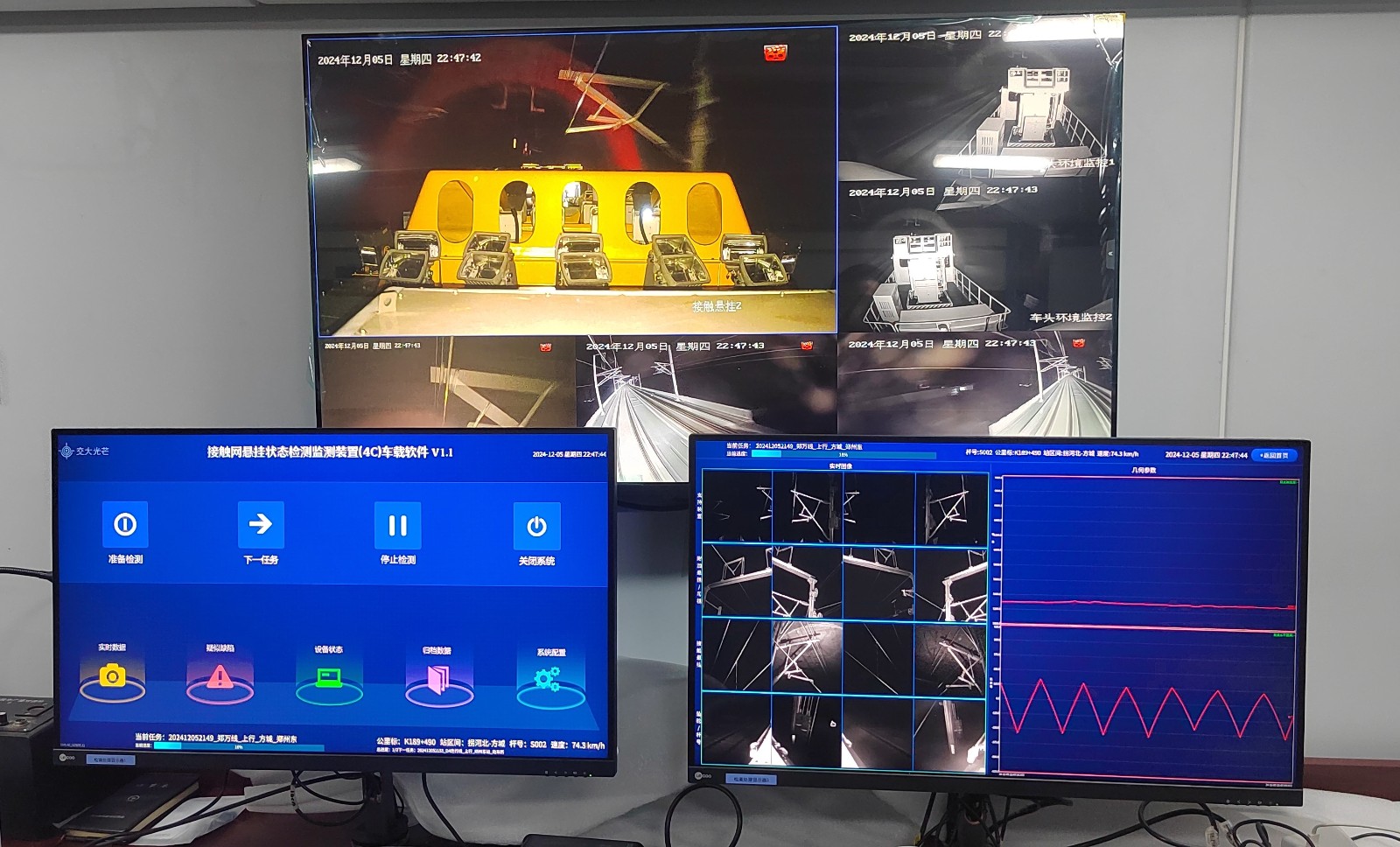 過去的鐵路供電接觸網檢測監測全靠人工在深夜的天窗點時段完成,工作條件差、工作量大且容易出現缺陷漏檢。交大光芒針對這一行業難題和客戶痛點,以“技防”代替“人防”,研制了鐵路運維裝備系列產品。其中4C裝置專為鐵路供電接觸網檢測監測需求定制,安裝在接觸網檢測車、作業車或其他專用軌道車輛上,對接觸網零部件進行成像檢測,測量接觸網的靜態幾何參數。2016年,沈陽鐵路局沈陽供電段4C檢測車配置交大光芒4C裝置,在供電接觸網檢測監測中發揮了重要作用。