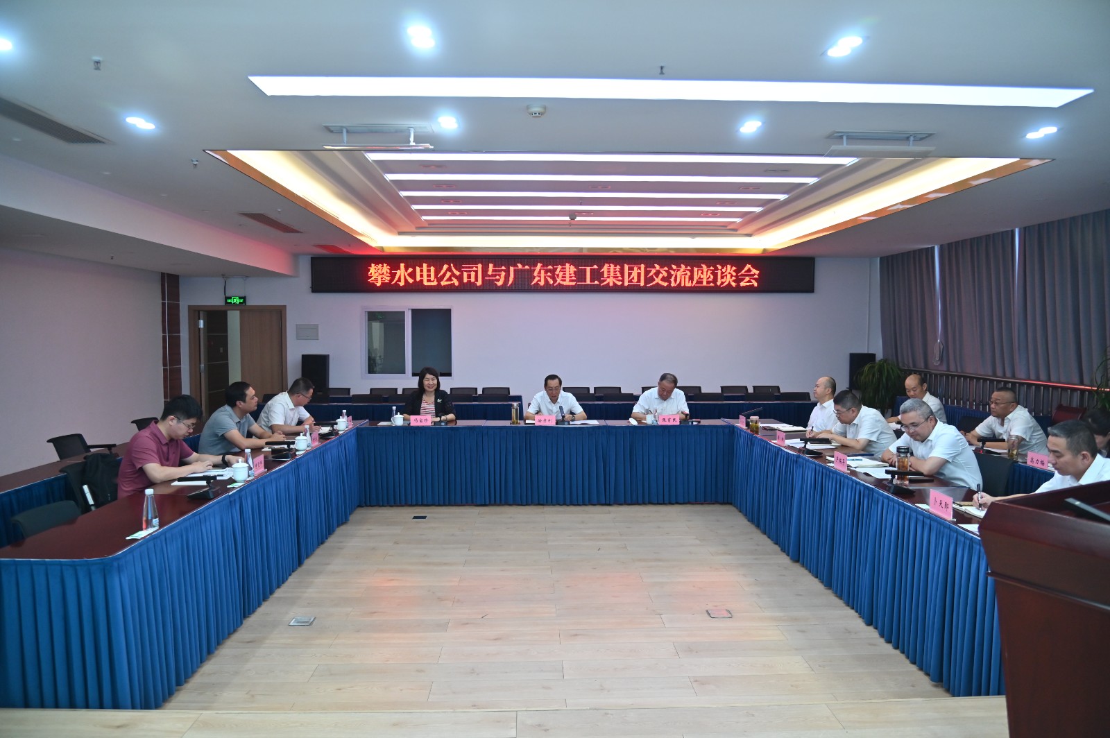9月16日,四川能源發展集團川投能源攀水電公司與廣東省建筑工程集團控股有限公司、廣東省源天工程有限公司在攀枝花進行了座談交流。廣東建工集團黨委書記、董事長張育民,廣東源天黨委書記、董事長馮寶珍等領導和隨行人員參加了會議;川投能源副總經理、攀水電公司黨總支書記、董事長徐孝剛及攀水電公司有關領導、部門負責人參加座談交流。會議由攀水電公司黨總支副書記、總經理吳巍嶼主持,主要圍繞深化項目合作、加快推動銀江水電站5號和6號機組安裝等進行座談交流。