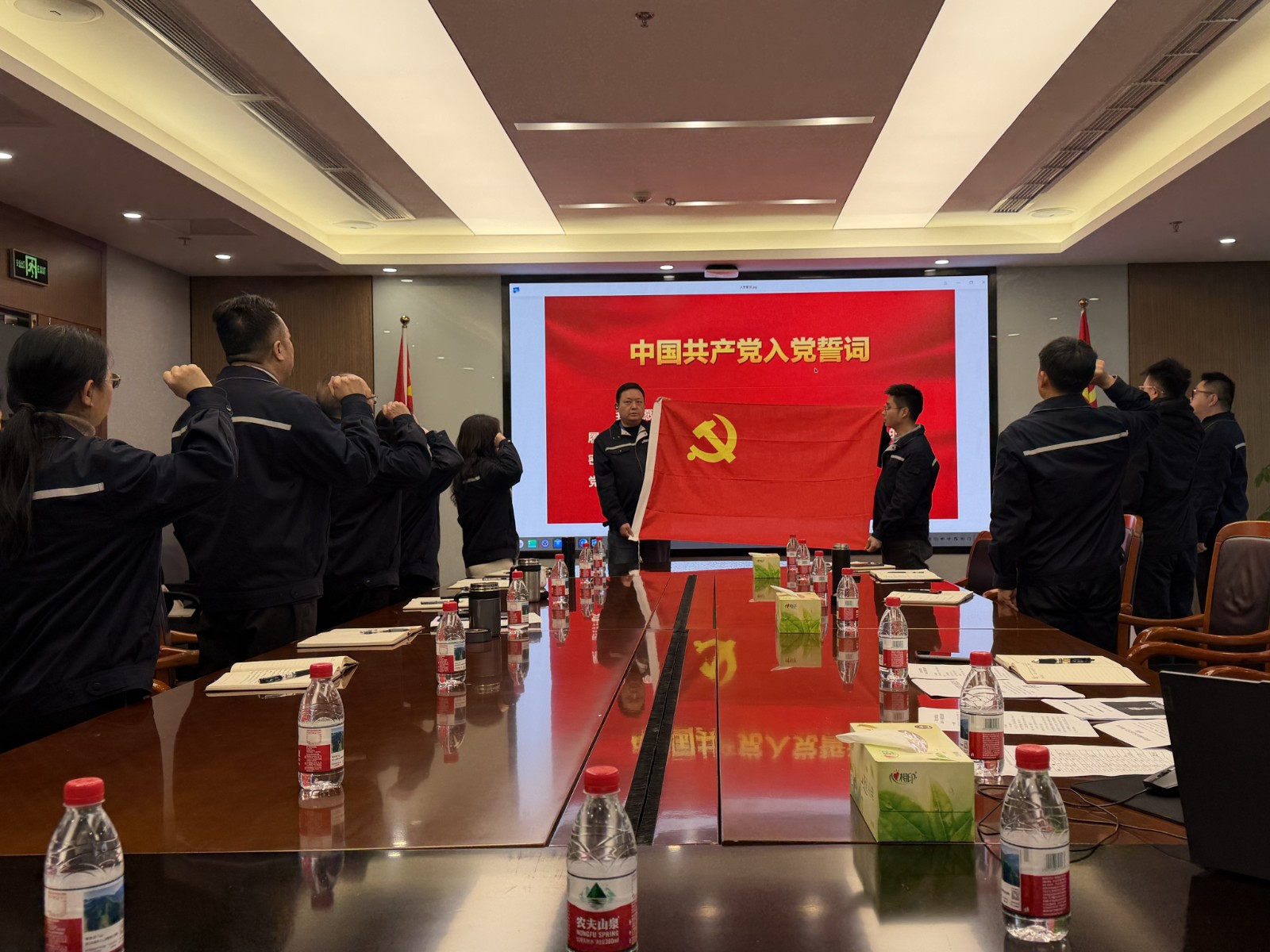 黨旗前,全體黨員與新黨員一同高舉右拳,莊嚴(yán)宣誓。鏗鏘有力的誓言,激發(fā)著每位黨員心中的榮譽(yù)感、責(zé)任感和使命感,承載著對黨的忠誠與對人民的承諾。通過宣誓儀式,新老黨員共同接受了一次深刻的黨性教育和精神洗禮,為黨組織注入了新鮮血液和奮進(jìn)力量。