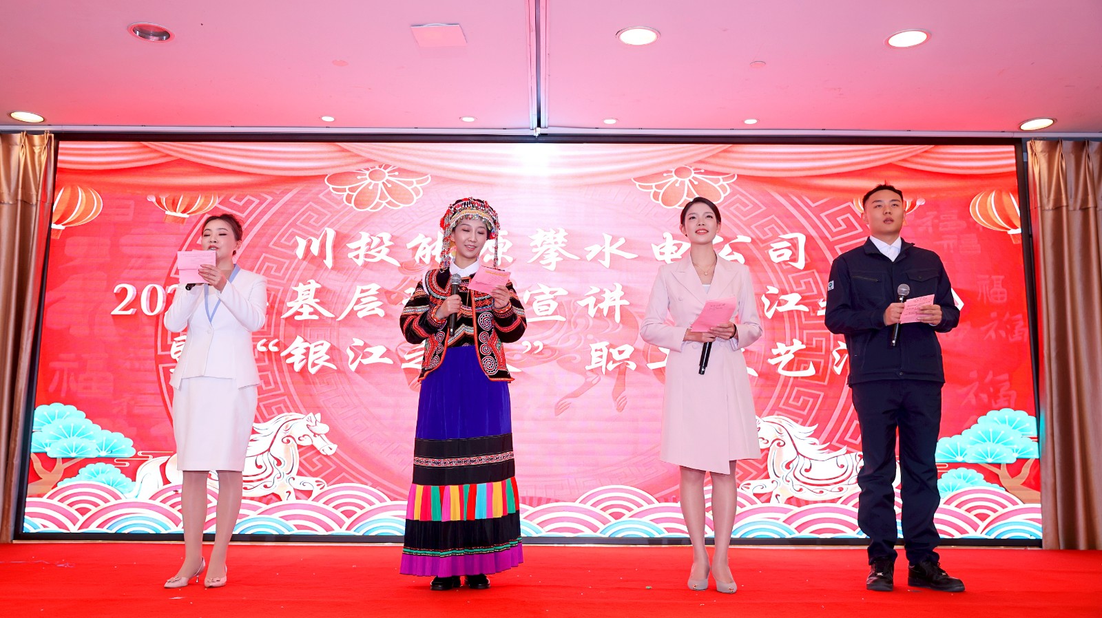 為扎實有效地推動基層理論宣講工作,促進黨的創新理論落地生根,1月28日,川投能源攀水電公司舉辦2026年基層理論宣講《銀江之路》暨“銀江之春”職工文藝匯演,向全體干部職工致以新春祝福。公司領導、各參建單位領導、全體職工及家屬100余人參加活動。