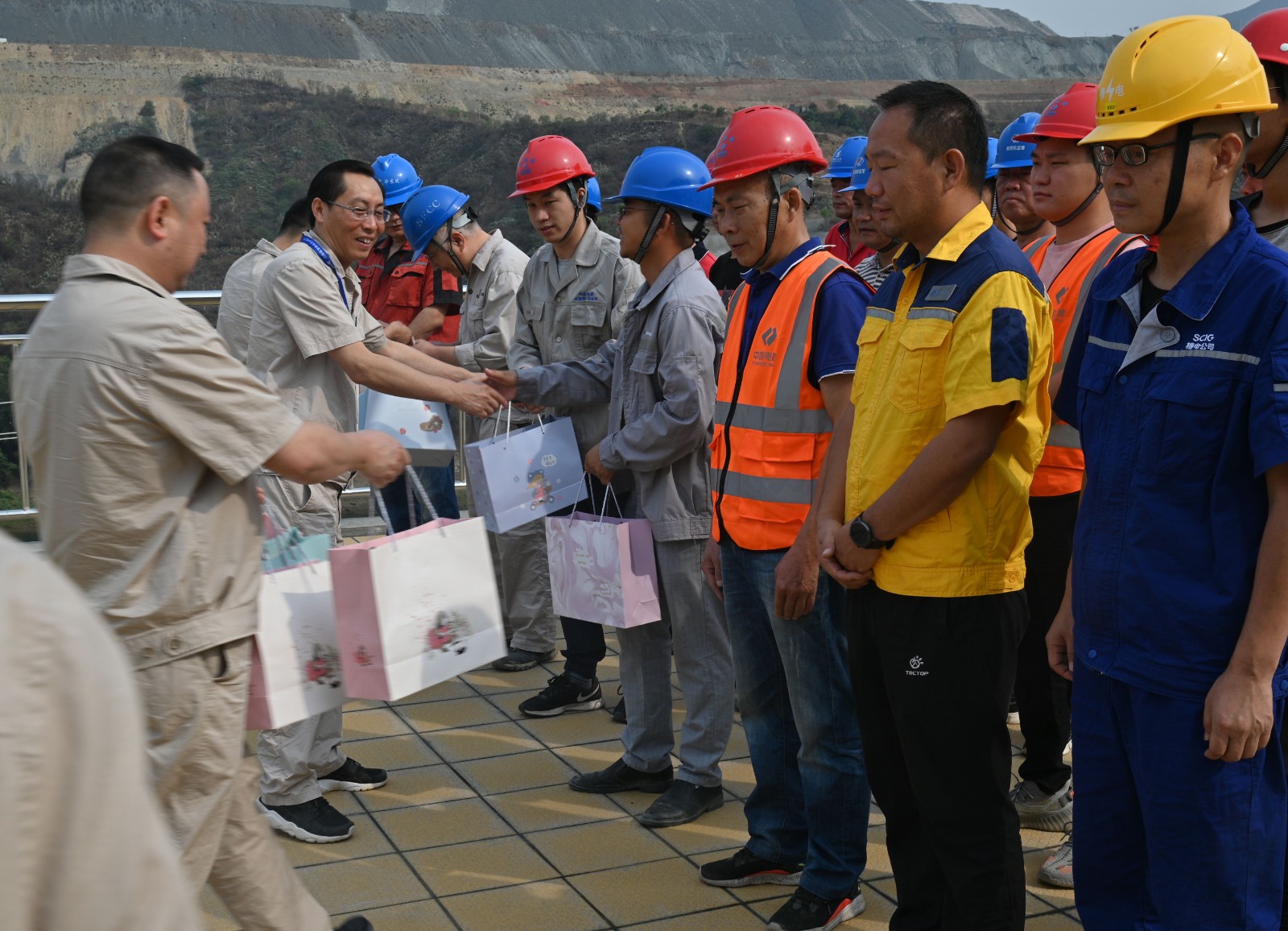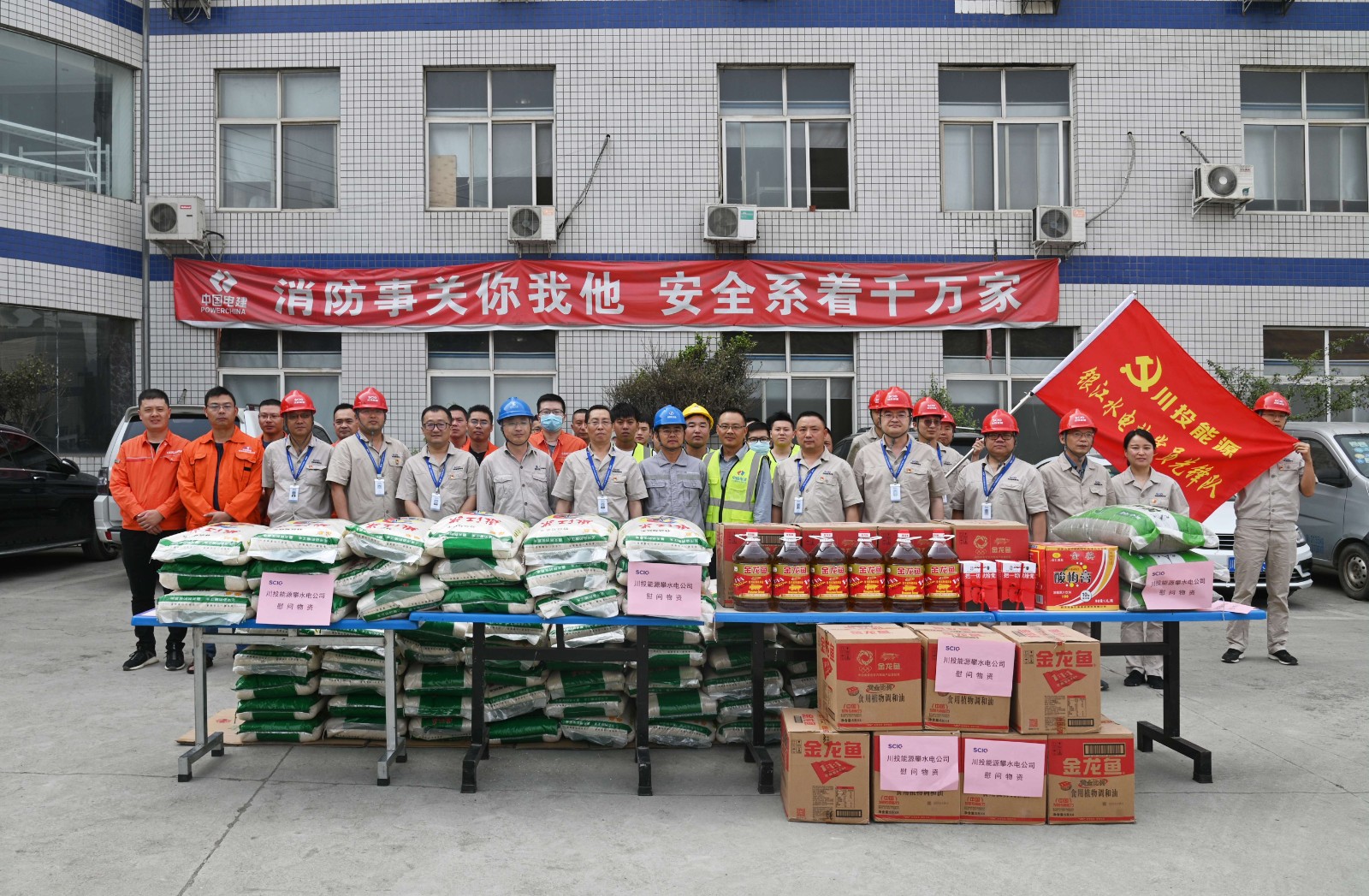 火紅五月,鳳凰花開,正值攀枝花最炎熱的夏季。“五一”國(guó)際勞動(dòng)節(jié)當(dāng)天,按照川投能源黨委“五個(gè)先鋒”及公司黨總支陽(yáng)光銀江大黨建之“十道陽(yáng)光”行動(dòng)計(jì)劃安排部署,本著“服務(wù)一線職工、助力工程建設(shè)”的宗旨,川投能源攀水電公司工會(huì)組織了送黨史書籍暨五一慰問(wèn)活動(dòng)。川投能源副總經(jīng)理、公司黨總支書記、董事長(zhǎng)徐孝剛帶領(lǐng)公司黨員先鋒隊(duì)及志愿者服務(wù)隊(duì)共20余人,慰問(wèn)堅(jiān)守在銀江水電站工程建設(shè)一線、戰(zhàn)斗在高溫酷暑之中的勞動(dòng)者們,公司黨總支委員、董事會(huì)秘書、工會(huì)主席鄧勇主持活動(dòng)。