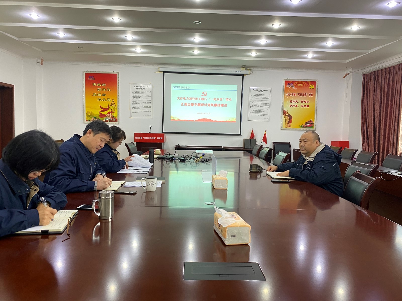 為貫徹落實全面從嚴治黨總體要求,根據上級黨委工作安排,10月21日,天彭電力召開領導班子履行“一崗雙責”情況匯報會暨專題研討黨風廉政建設和反腐敗工作會議,著力推動全面從嚴治黨向縱深推進。
