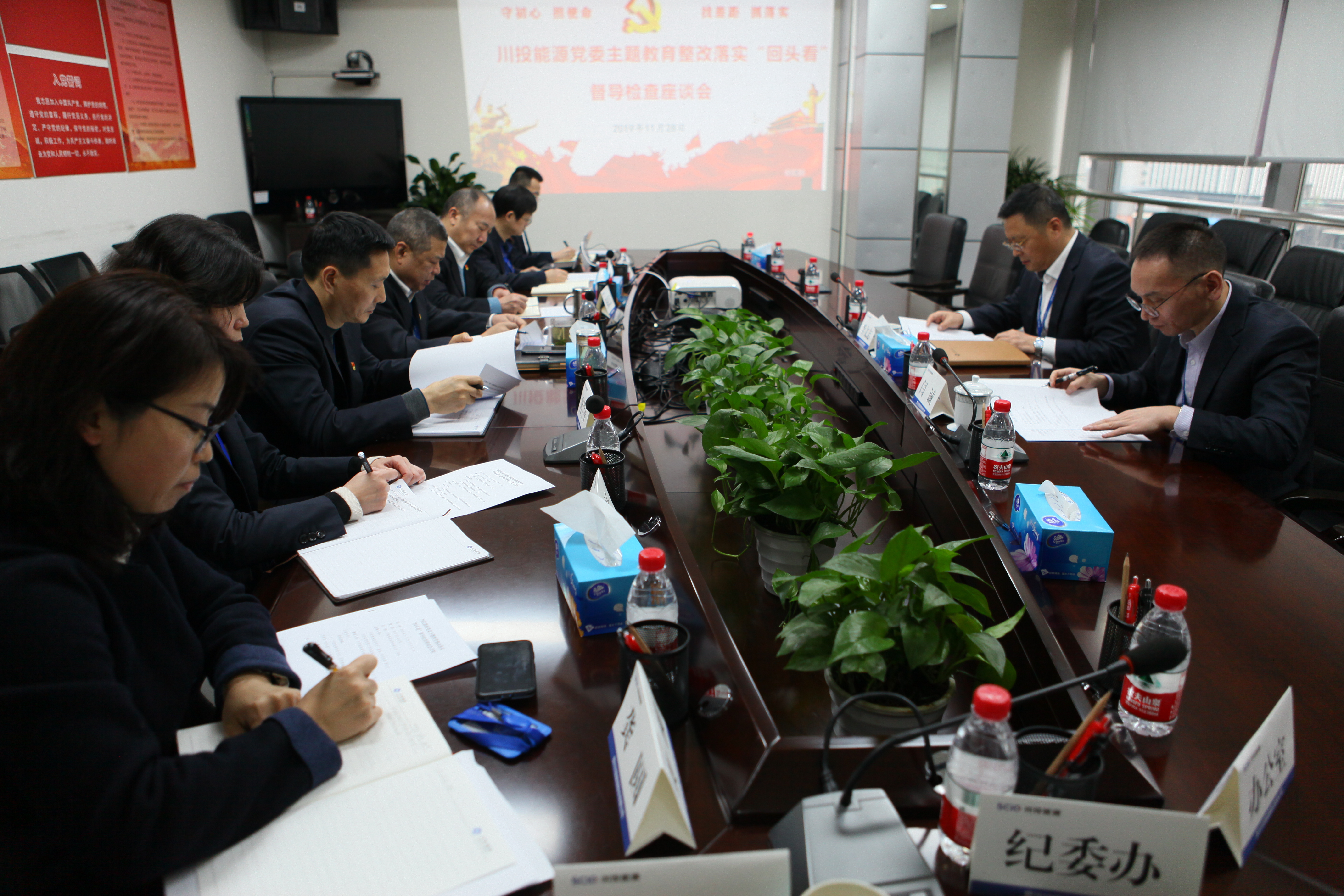 會后,閆誠副部長通過談話交流、查閱資料等方式,全面詳細督導檢查了川投能源主題教育整改、黨員干部政治思想洗禮提升、黨建與黨風廉潔建設改進等方面的情況。