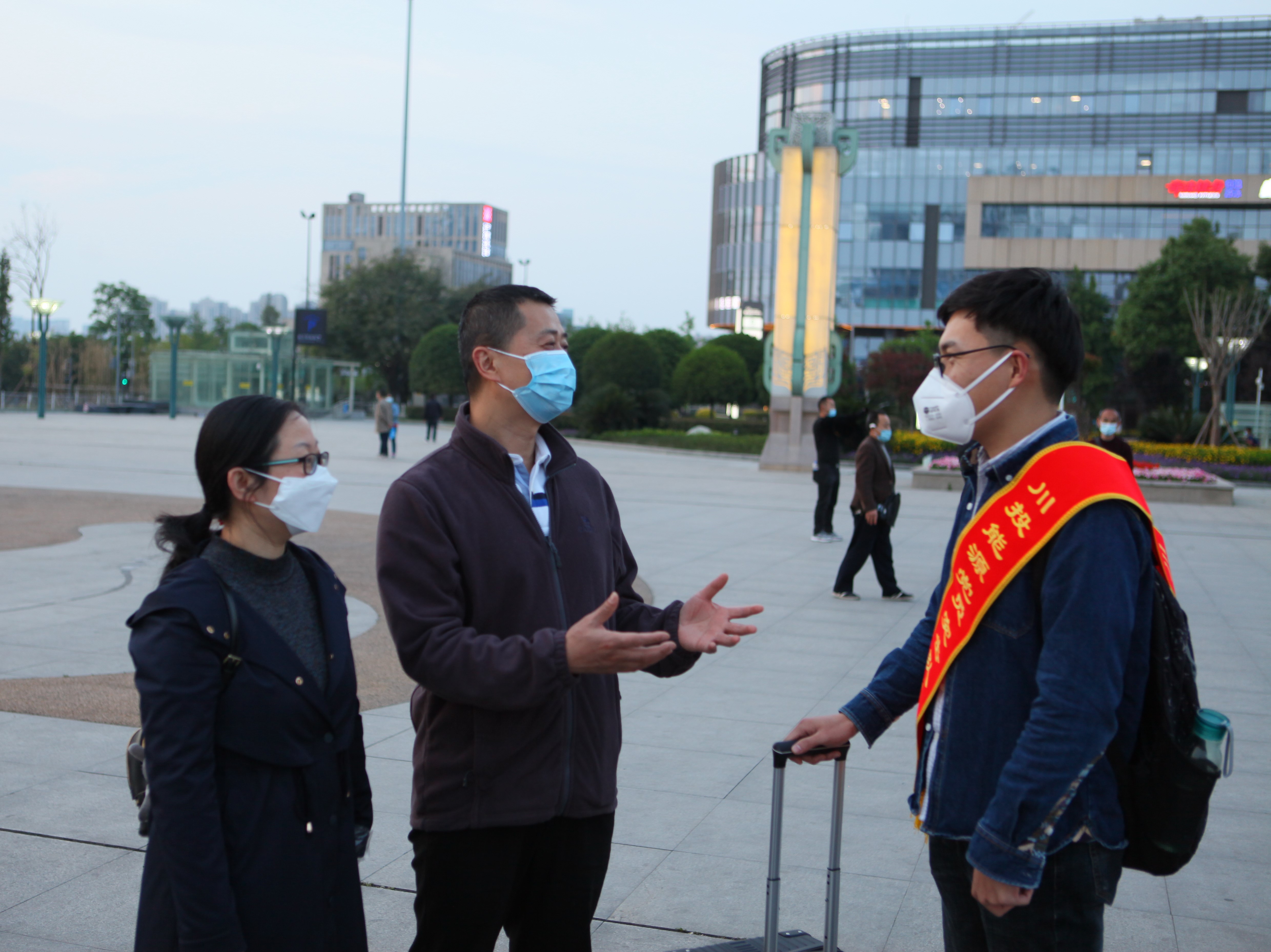 4月25日,川投能源 “最美逆行者”、交大光芒工程突擊隊隊員何啊潭同志圓滿完成在武漢鐵路局的值守任務,帶著勝利和平安凱旋歸來。川投能源黨委副書記、工會主席楊超龍與黨群工作部主任楊鑫以及交大光芒黨總支委員汪志橋一道,手捧鮮花,到成都東站迎接川投能源“最美逆行者”回家。
