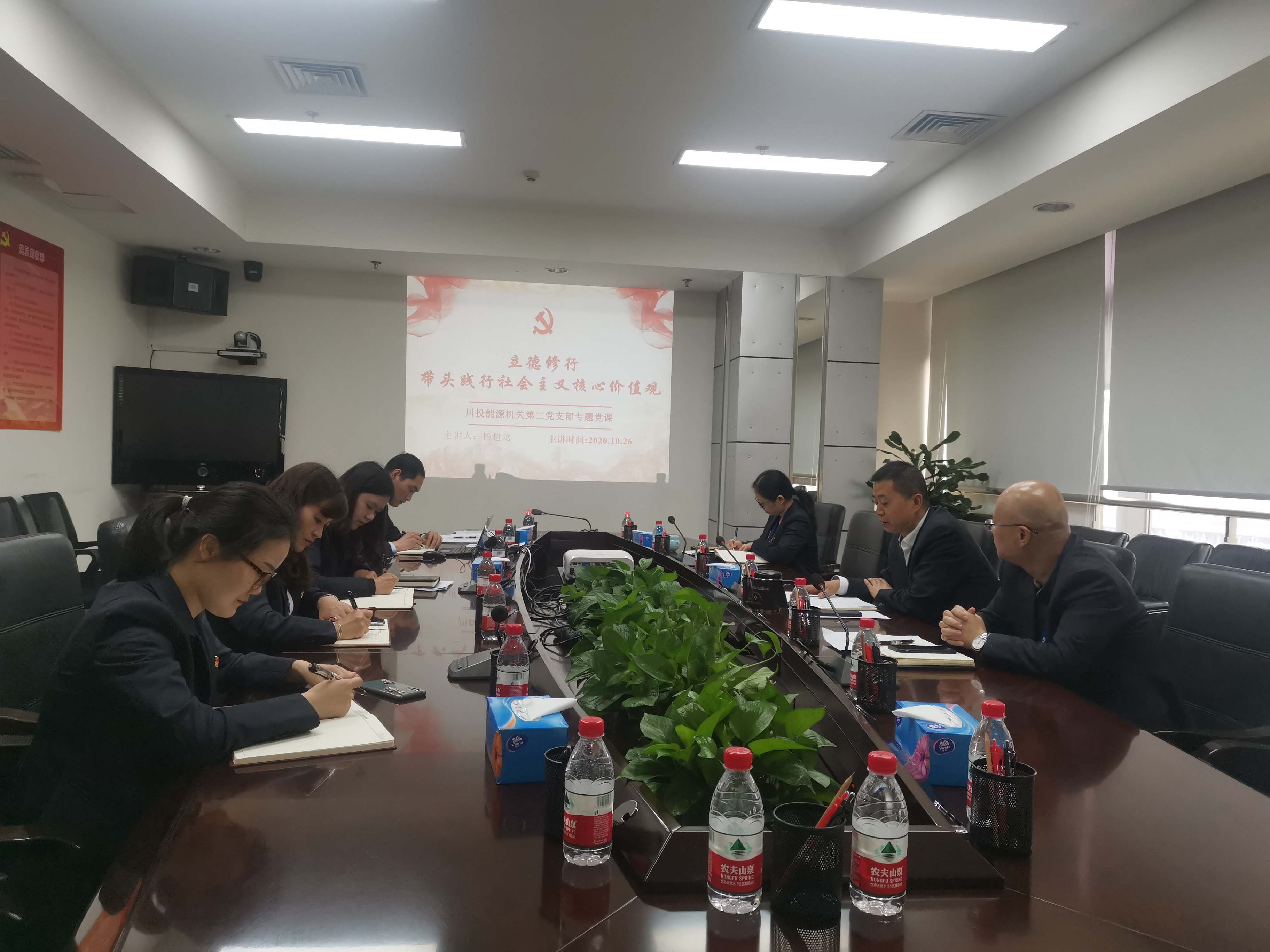 10月26日,川投能源機(jī)關(guān)第二黨支部召開黨員大會,公司黨委副書記、工會主席楊超龍以《立德修行,帶頭踐行社會主義核心價(jià)值觀》為題,就社會主義核心價(jià)值觀的內(nèi)容、重要意義以及黨員干部如何踐行三個(gè)方面,結(jié)合理論與自身感悟,深入淺出地為二支部黨員講授了一堂精彩的黨課。